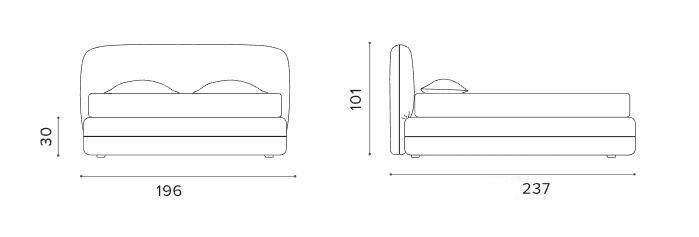 Монтсеррат – это мягкая кровать больших размеров. Округлое изголовье намеренно взъерошено, а мягкие поручни, идеально подходящие для скрытия практичного хранения под матрасом, облегчены центральной линией рельефной строчки.