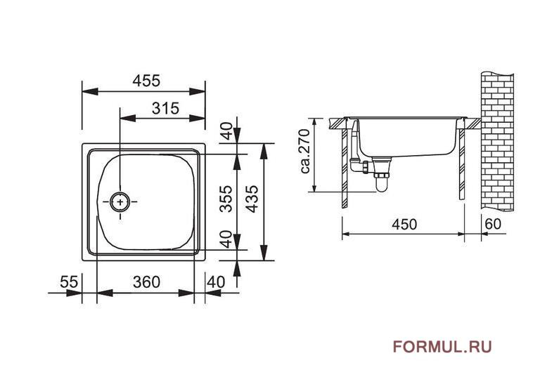 Компактная оборачиваемая мойка квадратной формы оптимальный вариант для небольшой кухни. Изделие не оснащается крылом, поэтому не занимает много места в рабочей зоне ширина чаши 45 см.