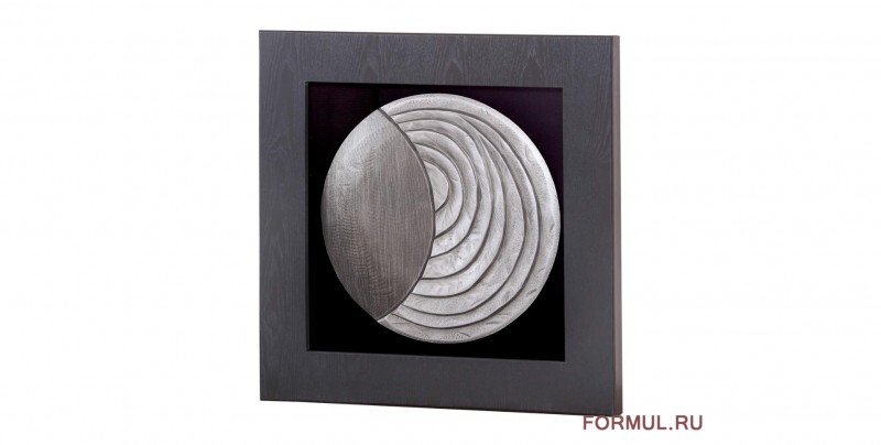 Панно "Начало затмения" — это настенное панно из фрезерованного МДФ в раме из шпонированного МДФ под стеклом. Цвет рамы черный с текстурой дерева, цвет панно - серебристый металлик. Подложка выполнена из фанеры обтянутой черным холстом.