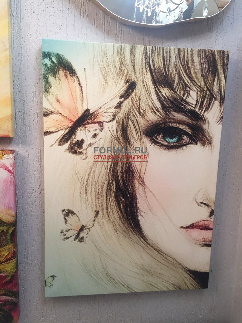 При подборе красивого интерьера для своего дома, нельзя обращать внимание только на мебель. Очень важной частью интерьера является декор. Замечательное современное панно украсит любую квартиру и подойдет практически к любой обстановке. На первый взгляд, такое простое и незамысловатое, но, одновременно, с такой тонкой линией глубокого смысла. Половина лица молодой, красивой девушки символизирует красоту и уют в доме. Чудесная игра цветов, заставляет долго смотреть и, возможно, фантазировать о том, как выглядит молодая особа целиком. Легкий цвет глаз и мотылька только подчеркивает глубину и создает интригу.