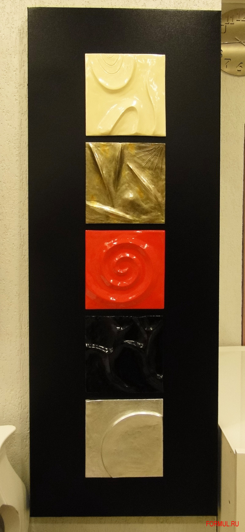 Прежде всего, панно P2684 - MOMA представляет собой эксклюзивную ручную работу. На хлопковом холсте мы видим пять керамических деталей с различными узорами. Эти керамические элементы окрашены в яркие сочные цвета, удивительным образом органично сочетающиеся друг с другом. Современная стилистика данного панно позволяет использовать его для любых современных интерьеров – эта декоративная панель привнесёт особую прелесть, и придаст практически любому помещению неповторимый изыск.