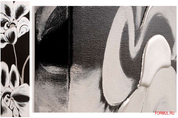 Панно Р2884 итальянского производителя Pintdecor изготовлено на качественном хлопковом холсте вручную. Оно представляет собой эксклюзивное абстрактное изображение в чёрно-белых тонах. На панно изображены цветы, исполненные в оригинальной авторской манере. Данная панель отлично впишется в современный интерьер, декорированный в стиле минимализм, хай-тек, нео-классика. Панно можно использовать для помещений различного назначения - широкий спектр применения гарантирован универсальностью данной работы.