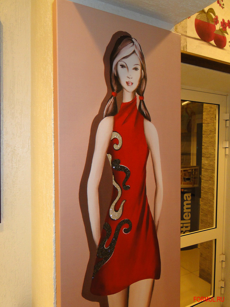 Элегантная стройная девушка в красном платье. Панно сразу привлекает к себе взгляды и точно не оставит никого равнодушным. При значительной высоте, оно достаточно узкое, а значит прекрасно впишется в интерьер.