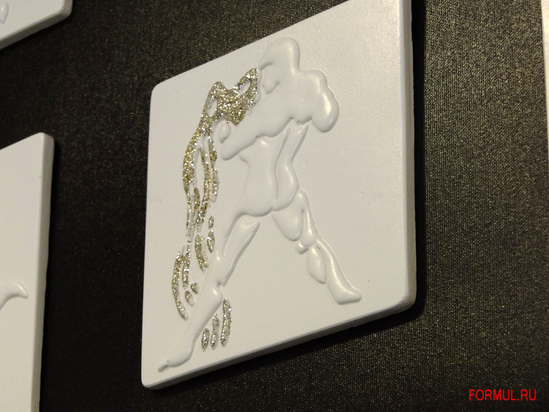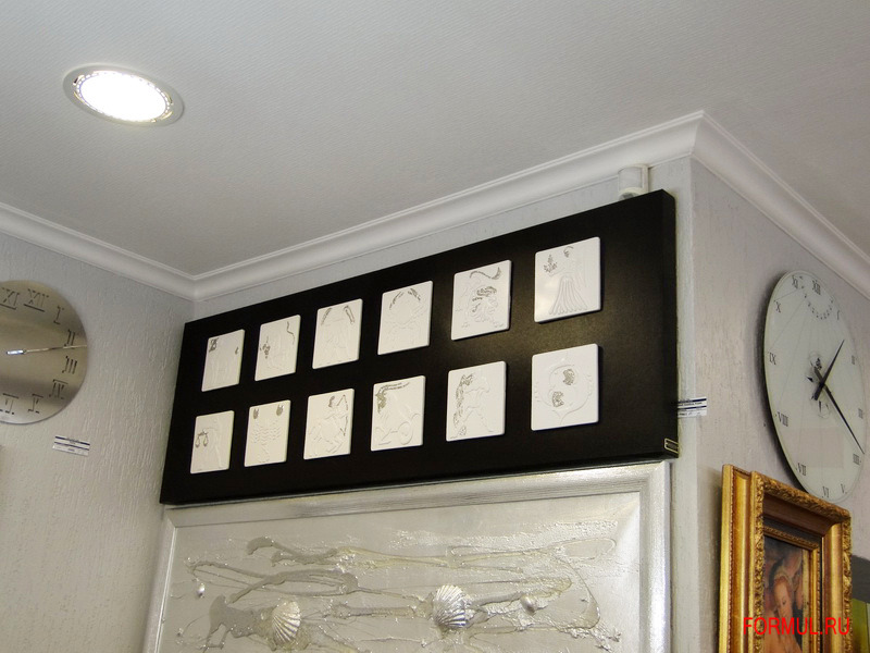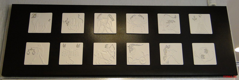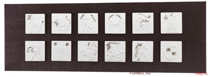 С древнейших времён астрология прочно вошла в нашу жизнь - зодиакальные созвездия сегодня известны всем и каждому. Обыгрывая тему зодиака, итальянская компания Pintdecor создала поразительное декоративное панно - P3284 - ZODIACO BIANCO. Двенадцать знаков зодиака, их художественное воплощение на двенадцати керамических пластинах – и вся эта красота размещена на чёрном холсте из хлопка.