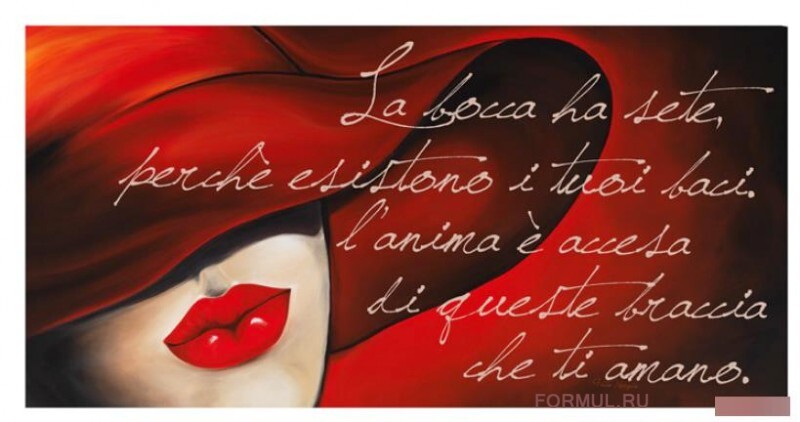 Итальянская фабрика Pintdecor знаменита своими уникальными предметами интерьера. Панно от этого производителя – особое направление, в котором Pintdecor нет равных. Взгляните на декоративную панель P3338 - MON AMOUR, выполненную акриловыми красками на хлопковом холсте. Яркий красный цвет, преобладающий в этом панно, вызывает бурю эмоций. Полные красные губы на прелестном женском лице, почти скрытом за широкими полями ярко-красной шляпы – это символ чувственности, страсти и красоты.