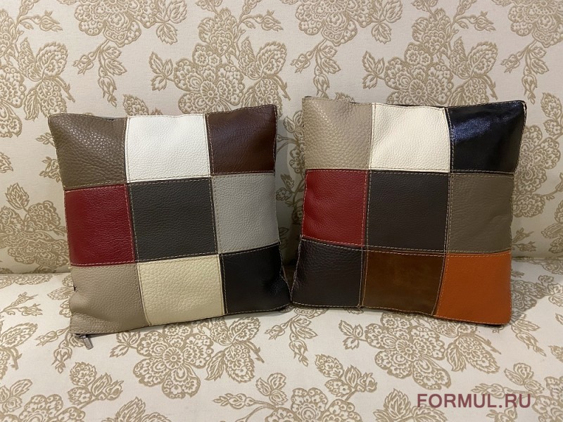 Изделие выполнено из натуральной кожи, выкрашено красками, безопасными для здоровья. Швы между лоскутами надежно фиксируют модель и придают ей формы. Такие творения сделают более комфортабельными диван, подоконник, кровать, лавочки – все то, что хочется оформить более мягким, более теплым.