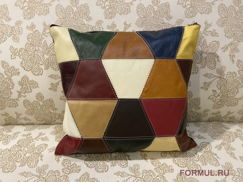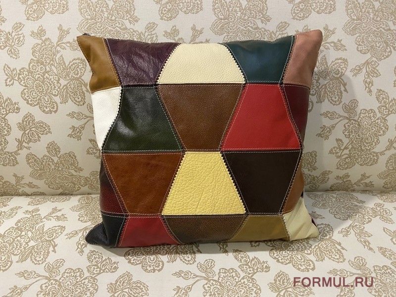 Изделие выполнено из натуральной кожи, выкрашено красками, безопасными для здоровья. Швы между лоскутами надежно фиксируют модель и придают ей формы. Такие творения сделают более комфортабельными диван, подоконник, кровать, лавочки – все то, что хочется оформить более мягким, более теплым.