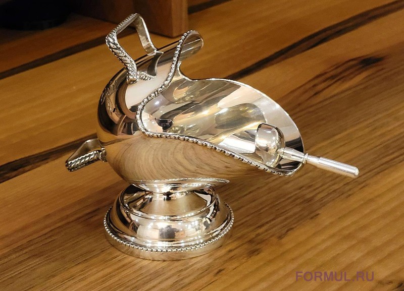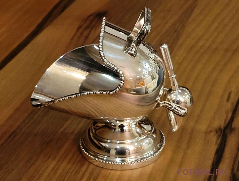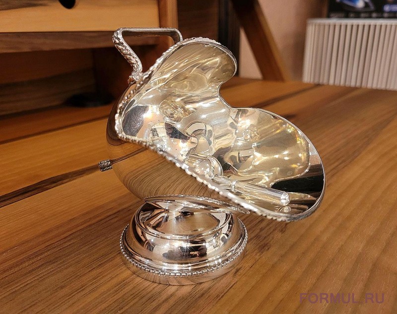 В комплекте с сахарницей идет небольшой серебряный совочек, созданный в том же стиле. Этот изысканный аксессуар дополняет функциональность сахарницы, позволяя подавать сахар вашим гостям полностью соответствуя стилю эпохи. Сзади на сахарнице предусмотрено специальной крепление для совочка, чтобы он никогда не потерялся. Этот комплект станет не только функциональным элементом вашей кухни, но и настоящим произведением искусства, способным вдохновлять и радовать глаз. Позвольте этим сокровищам внести изысканную ноту в вашу жизнь и принести чарующую атмосферу роскоши в ваш дом.