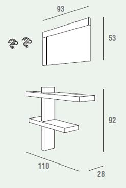 В комплекте: зеркало навесное, консоль, вешалка навесная-2 ед.