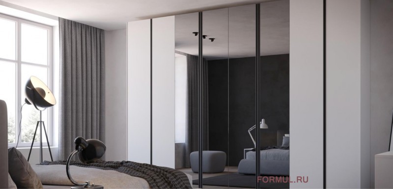 Каркас и двери белый матовый лак, в середине 4 двери зеркальные. Ручка gola черный матовый лак