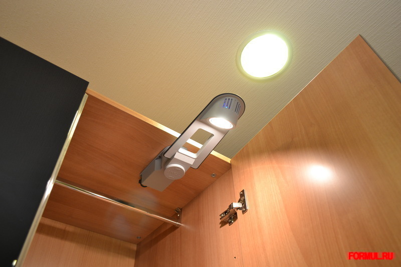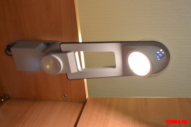 Автоматически включает/выключает свет при открывании/закрывании двери шкафа.