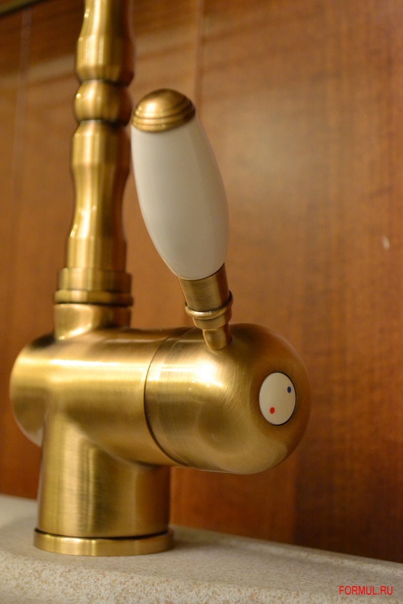 Смеситель Spar art.2800VO изготовлен в классическом стиле, имеет хорошие отзывы, прекрасно поддерживает ретронаправление в кухне и ванной. Материал - состареная латунь. Смеситель отднорычажный для раковины. Отличительной характеристикой этого вида смесителей можно считать рычаг, одновременно выполняющий функции сразу двух головок. С его помощью регулируется температура и напор подаваемой струи. В первом случае ручка крана передвигается вправо либо влево, во втором – вверх или вниз. Обычно эти процессы совмещаются, позволяя пользователю установить наиболее комфортный для него вариант. В комплекте поставляется с гибкими подводками.