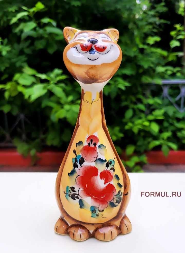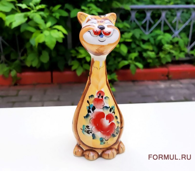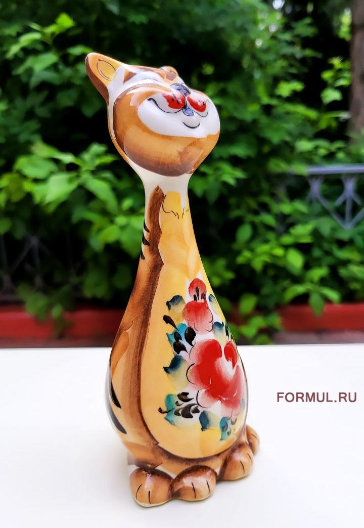 Крупная яркая статуэтка кошки выполнена в технике майолика, украшена ручной Органично смотрится в жилище, оформленном в дизайн-направлении прованс.