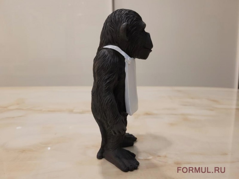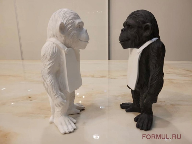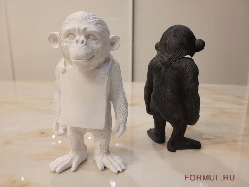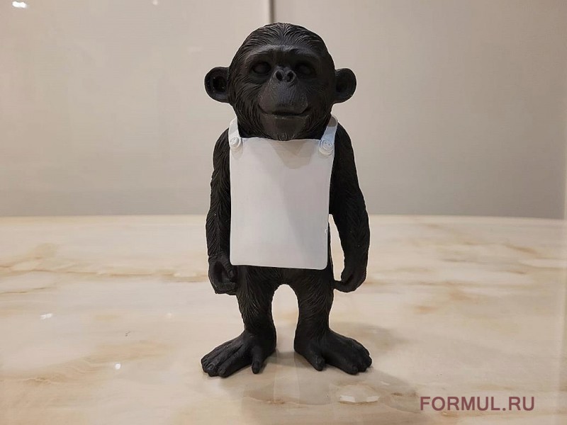 Статуэтка обезьянки выполнена из модельной смолы черного цвета. На фартуке можно написать (или прикрепить небольшой листочек с надписью) что-нибудь веселое или мотивирующее. Обезьянка оживит любой интерьер и будет вызывать улыбку у каждого, кто на нее взглянет. Дизайн и форма вдохновлены работами фабрики Seletti. В продаже так же есть версия в полностью белом цвете.