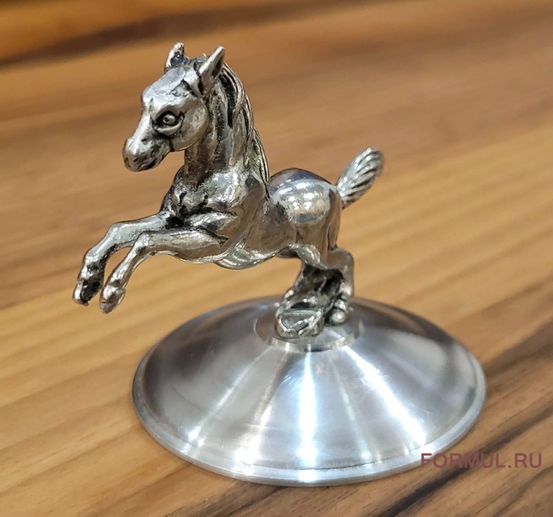 Миниатюрная статуэтка коня, автору удалось запечатлеть энергетику движения этого грациозного животного . Серебряное покрытие гарантирует, что фигурка будет радовать вас долгие годы.