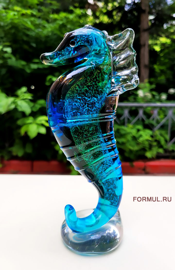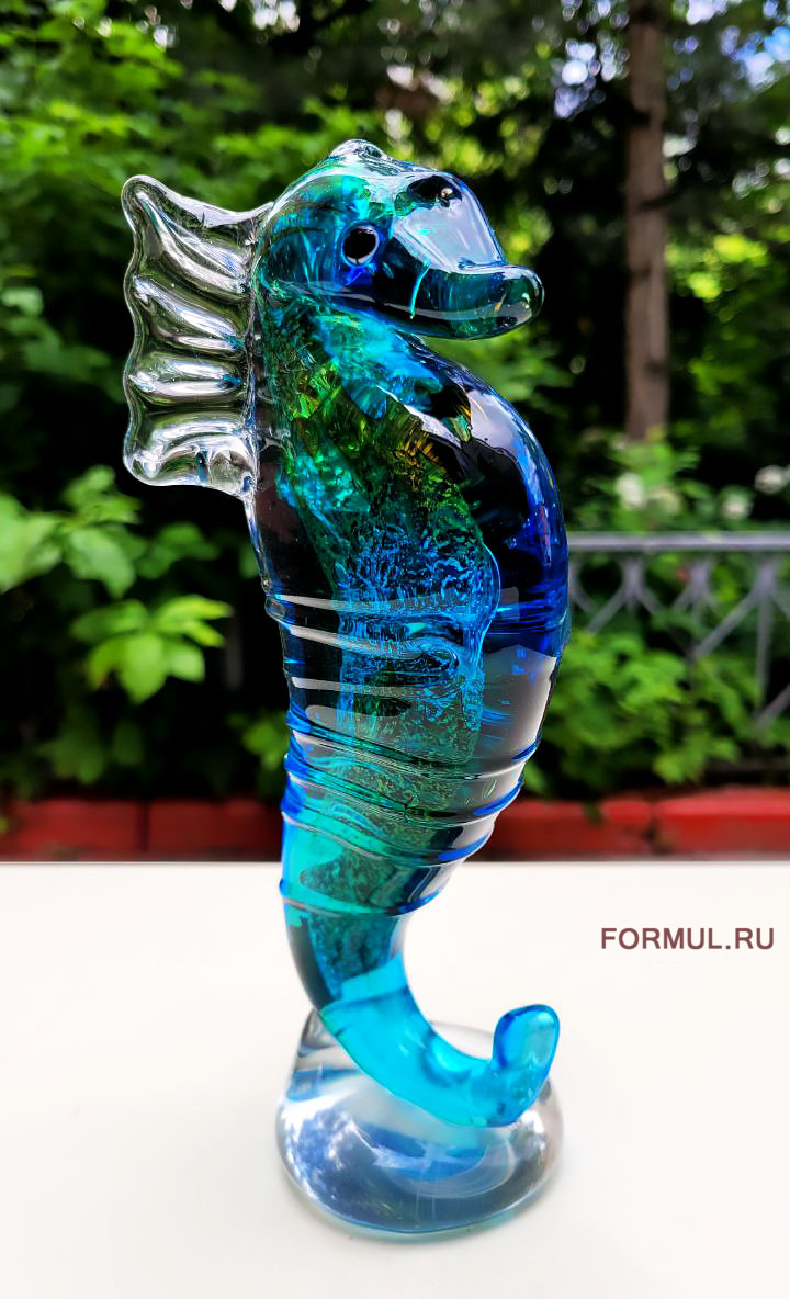 Статуэтка морского конька с потрясающей детализацией. Скульптуры жителей морских глубин выполненных из стекла особенно хорошо передают все красоту и грацию этих удивительных созданий.