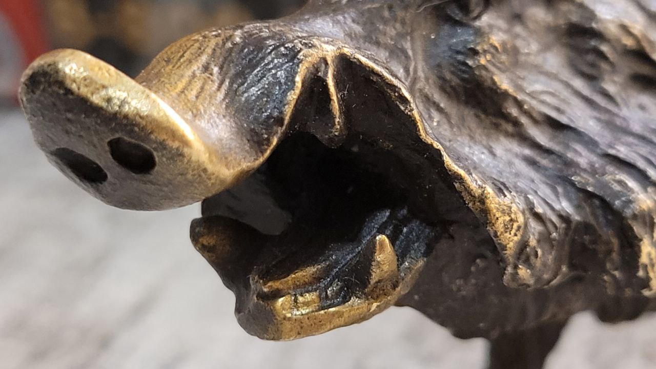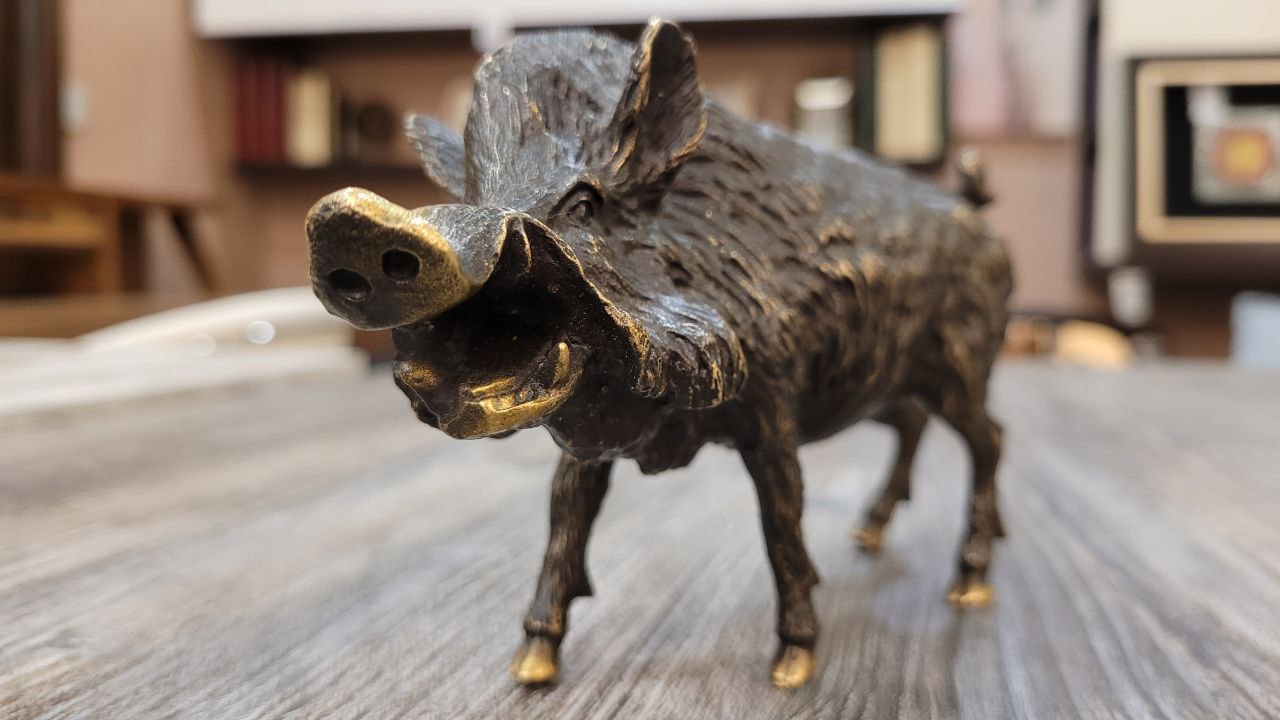 Статуэтка дикого кабана секача с потрясающей детализацией. и ручной гравировкой. Хоть фигурка и полая внутри, но достаточно тяжелая (483.51 гр)
