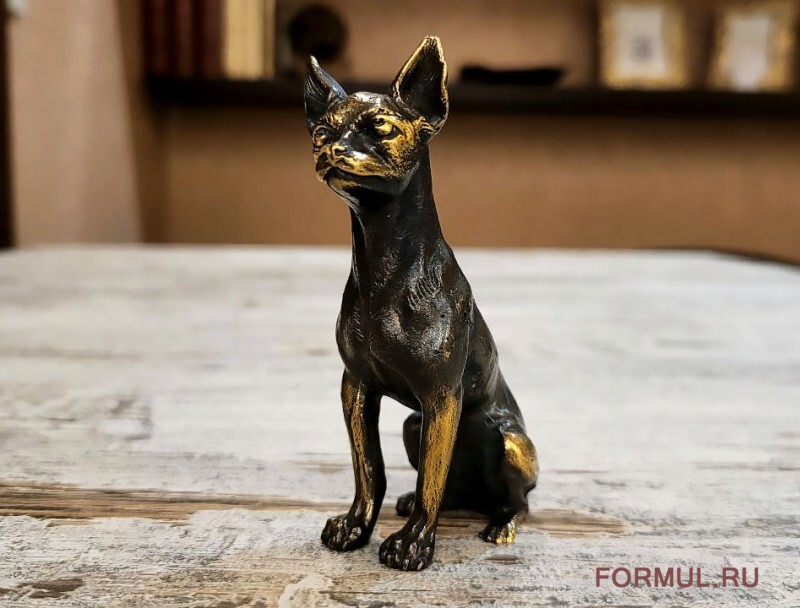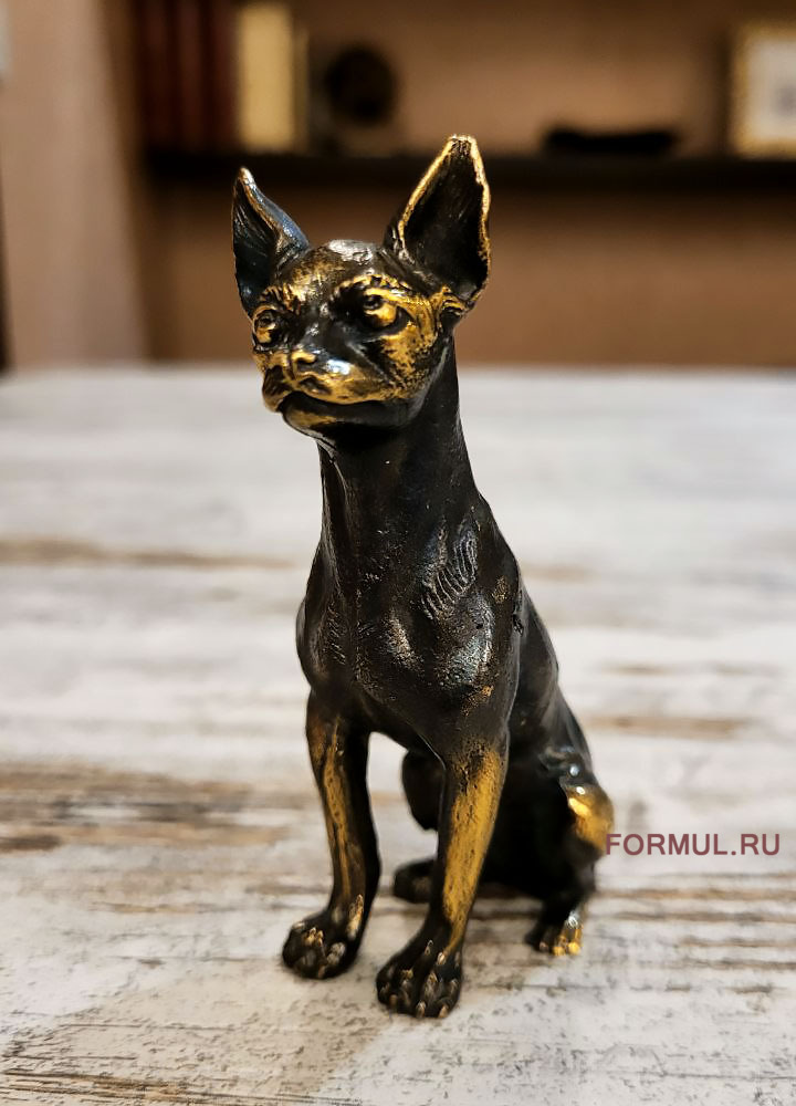 Миниатюрная фигурка собаки породы Чихуахуа, выполнена из латуни. Фигурка тяжелая, увесистая, цельная без полостей.
