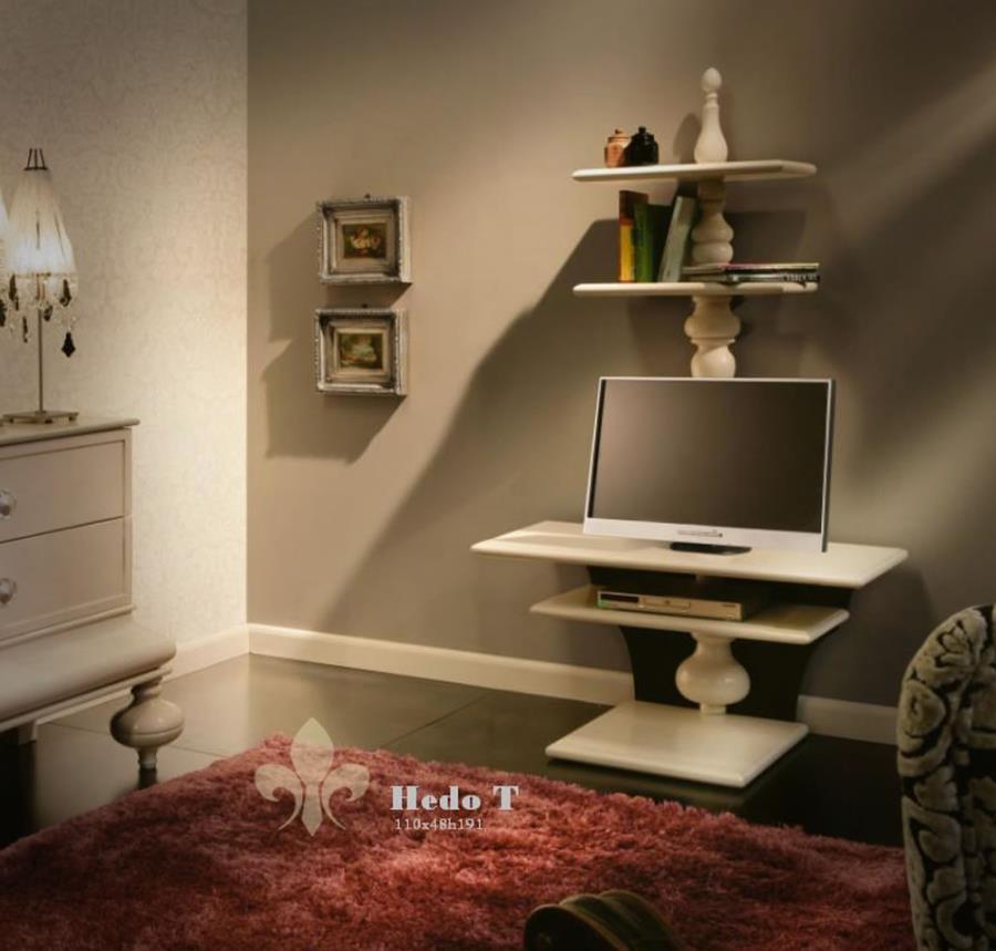 Необычный стеллаж ручной работы от компании Tiemme. Большая полка подойдет для размещения телевизора, небольшие - для книг и сувениров. Несмотря на то, что стеллаж достаточно требовательный к месту и скорее всего займет целую стену, является очень функциональным и вместительным. Пример использования в интерьере на фото от фабрики (на фото отличается цвет и модель)