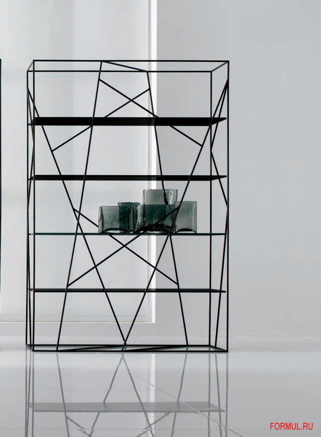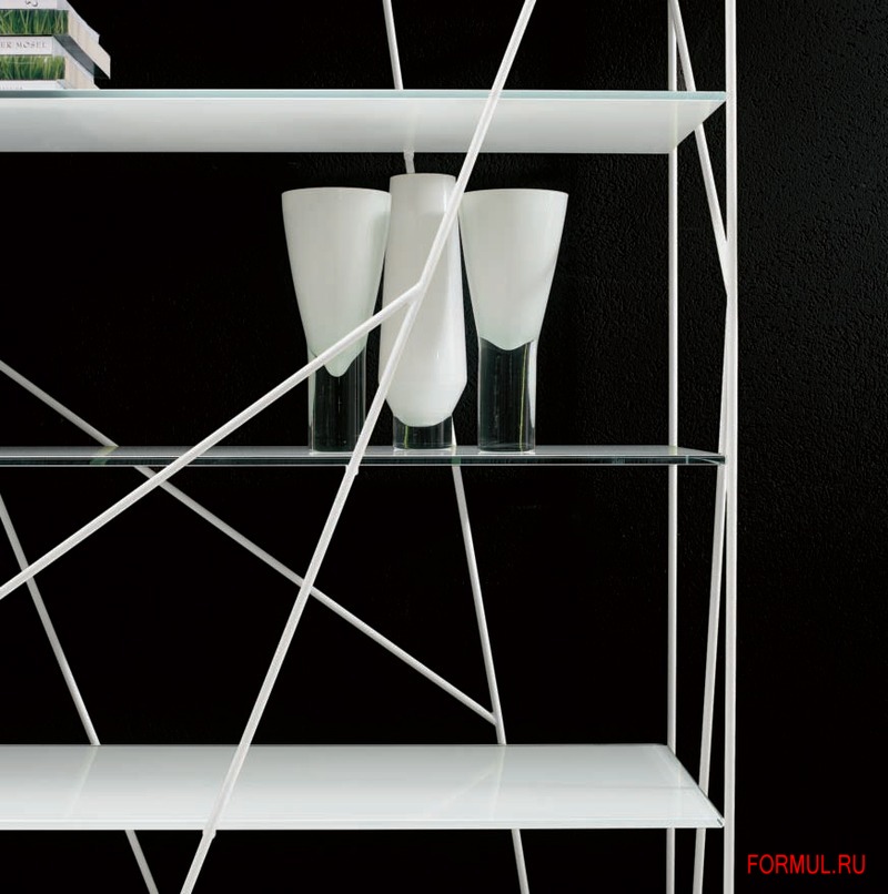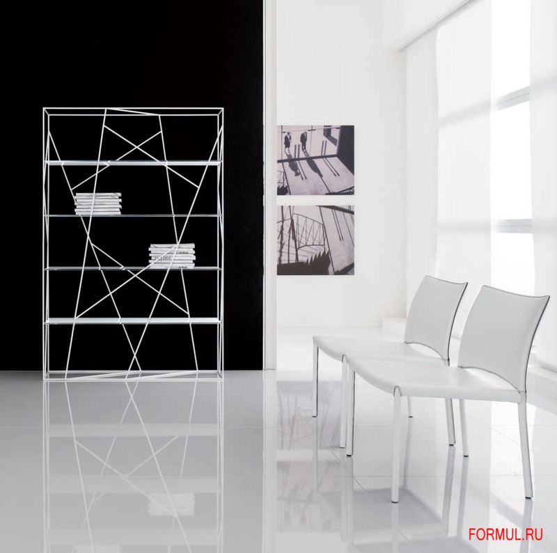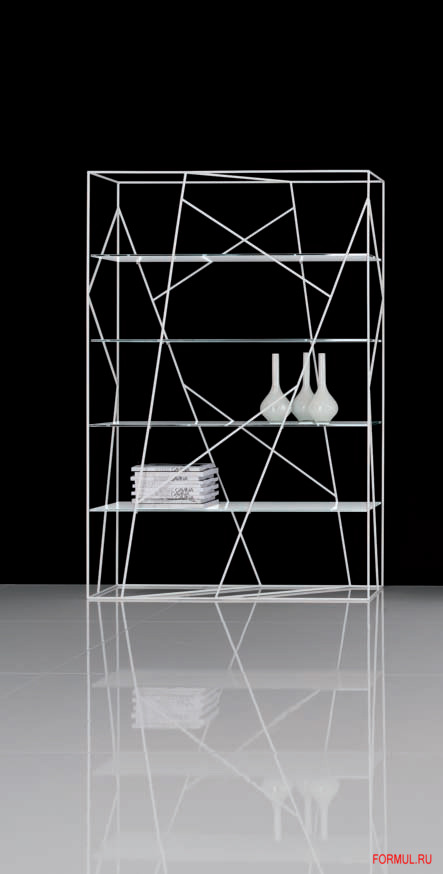 Стеллаж выполнен в стиле хай-тек, поэтому - это точные линии, прямые направляющие, сдержанность и нотка доступной роскоши. Металлическая конструкция представляет собой не только каркас, но и строгий рисунок-украшение из линий-прутьев, придающий стеллажу некоей загадочности. Полки выполнены из стекла, покрытого белым лаком. Стеллаж создает в комнате интригу и некое волшебство, служит не только функциональным предметом элитной мебели, но и ярким декоративным элементом интерьера.