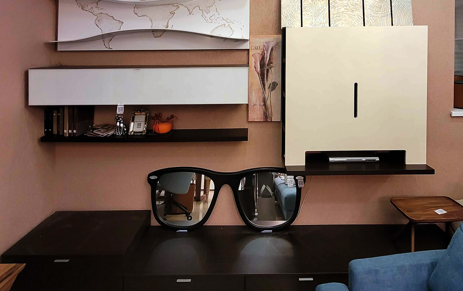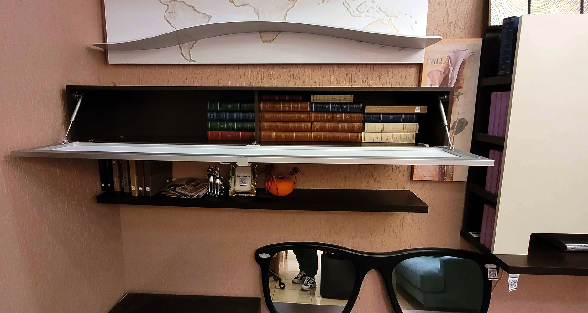 Для того чтобы дизайн был единым, используется специальная панель для телевизора, которая не только поможет скрыть малоестетичные провода и разъемы, но и придаст эксклюзивный и стильный вид даже самому обычному телевизору. Панель разместит на себе телевизор диагональю до 42 дюймов. Панель Spar имеет ряд функциональных достоинств, среди которых компактное размещение дисков и прочих аксессуаров на четырех полках с каждой стороны фасада и удобное место для сопутствующей аппаратуры в нижней части панели.