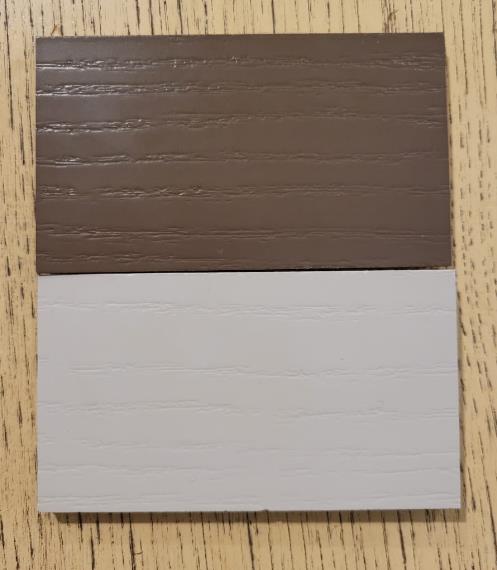 каркас и двери: бежевый и коричневый технический шпон, открытые элементы: белый матовый лак