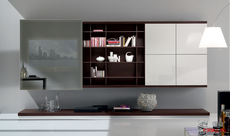 Мебельные стенки не теряют своей актуальности, но приобретают все новые, более современные формы. Итальянская стенка Spar Y31 отличается не только простотой дизайнерского решения. Вся прелесть лаконичности и цветовой гамме. Четкость линий, геометричность форм делают такой предмет мебели стильным и изысканным одновременно. Важную роль играют материалы. Фасады из белого глянца и стекло-рефлекса, а также корпус цвета венге придают современному мебельному комплекту компактный и вместе с тем нарядный внешний вид.