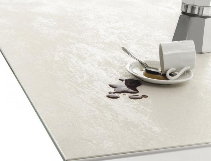 Столешница: СУПЕР КЕРАМИКА БЕЛЫЙ ЦВЕТ CR003 , ОСНОВАНИЕ металл БЕЛЫЙ ЛАК М306, вставки ламинированные