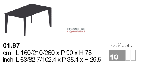 Стол-трансформер CRUZ 01.87 изготовлен в Италии лучшими мастерами Bontempi. Модель современного типа, раскладная, прямоугольной формы, за ним одновременно могут находиться до 12-ти человек. Трансформер обеспечивает три варианта раскладки: минимальная длина - 1,6 метра, максимальная – 2,6 метра.