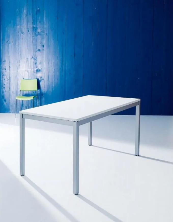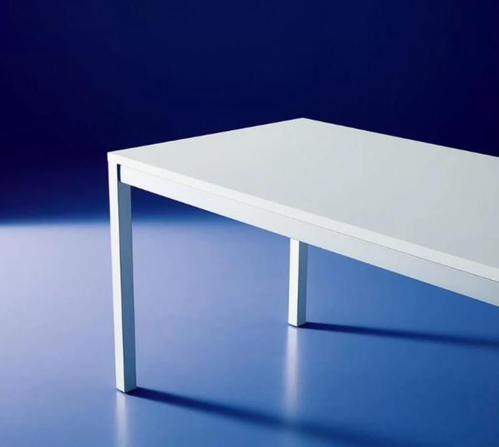 Дизайнер Daniele Molteni. Структура стола из лакированной стали, благодаря этому очень прочная модель. Столешница имеет цветовую гамму – алюминий, изготовлена из прочного стекла, меламина, недеформируемого композита (Unicolor), устойчивого к царапинам. Стекло с матовым эффектом.