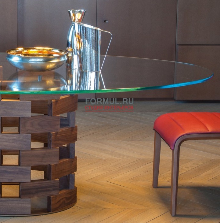 Модель COLOSSEO – 8076 является образцом стиля, яркой индивидуальности и сдержанного благородства. Удивительное сочетание шика и вкуса в этой модели обеспечивает, прежде всего, эффектная тумба под столешницу. Оригинальное плетение в виде деревянных кирпичиков, мастерски собранных в круглое основание под столешницу, смотрится очень необычно. Прозрачная овальная столешница прекрасно гармонирует со своей эффектной подставкой.
