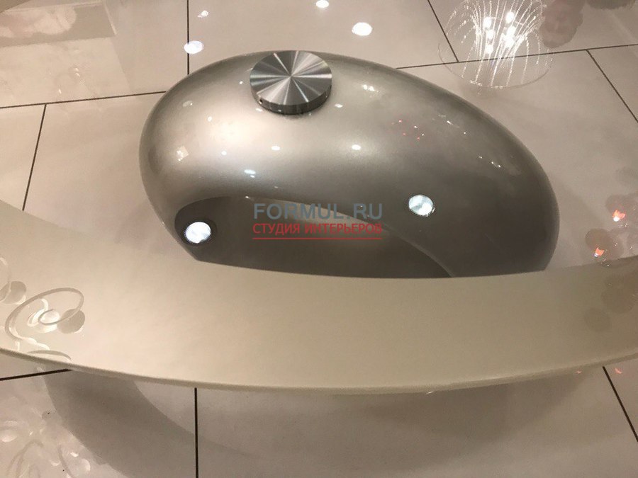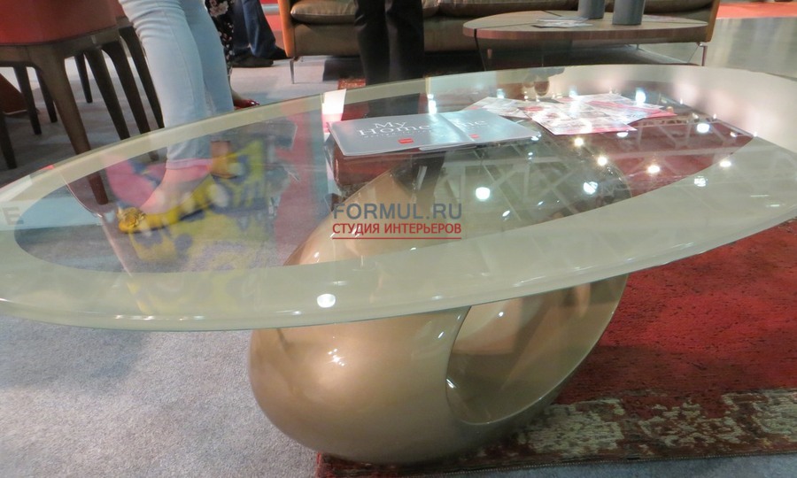 В такой же цвет окрашен выточенный в форме овала камень, на котором укреплена столешница. Середина подставки - камня BASE-560 Champagne lucido - выбрана асимметрично, что придает изделию особый шарм. Глянцевый праздничный блеск всего изделия заставляют забыть, что эта основательная вещь весит 65 кг. Приобрести журнальный стол (в наличии модель DUBAI 6608) можно в разделе «Распродажа». Сюда попадают дизайнерские брендовые вещи, оставшиеся у компании «Формула успеха» в единичных экземплярах. Модный предмет мебели обойдется гораздо дешевле.