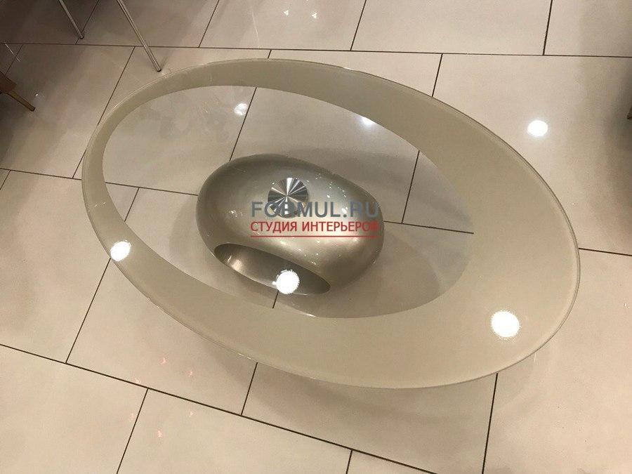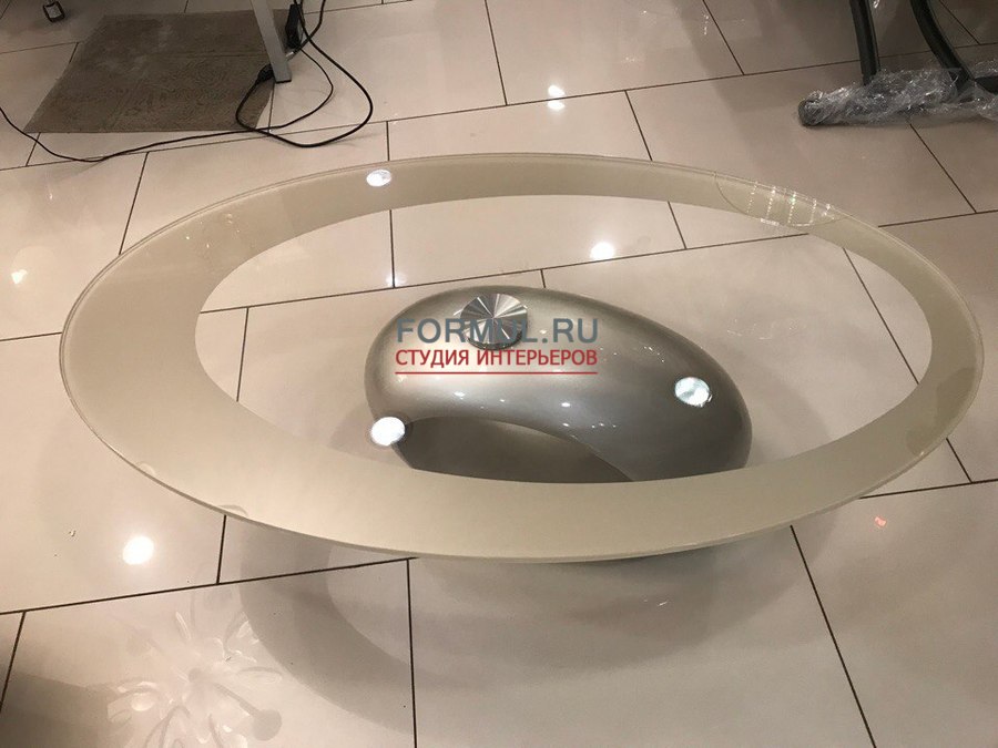 Новшества в формах неклассической мебели и материалах, из которых они изготавливаются, позволяют обустроить квартиру стильно и функционально. Предметы мебели перестали визуально загромождать пространство жилплощади. Стол журнальный DUBAI 6608 от дизайнеров фабрики Tonin Casa (Италия) имеет эксклюзивную «внешность». Смелое сочетание стеклянной столешницы и оригинальной формы ножки из камня делает изделие абсолютно непохожим на привычные журнальные столики. Овал большой стеклянной столешницы абсолютно прозрачный в центре, окаймлен широкой непрозрачной полосой цвета шампань (TOP-V160 Serigrafato champagne).