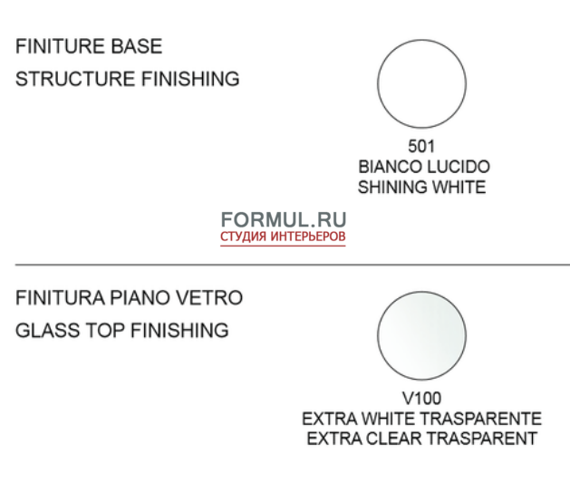 Отделка: база в глянцевом белом лаке, топ прозрачное стекло.