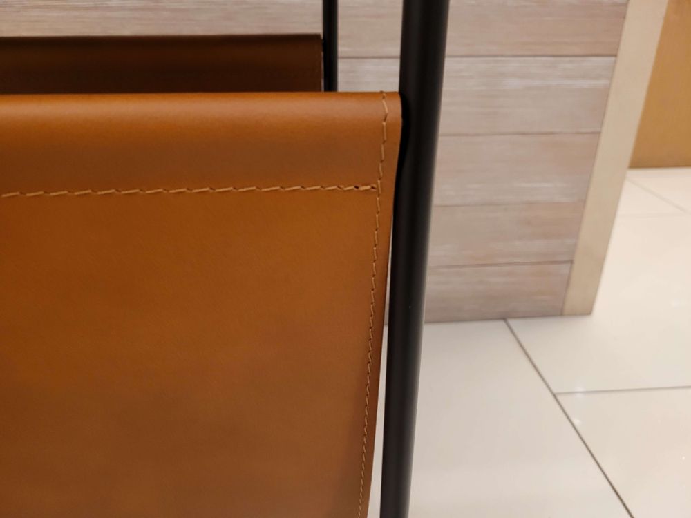 Отделка: основание - металл черный матовый лак (P15 matt black negro mate), окантовка столешницы - натуральная прессованная кожа цвета коньяк (R04 Cognac), столешница - шпон черный матовый (315 matt black)
