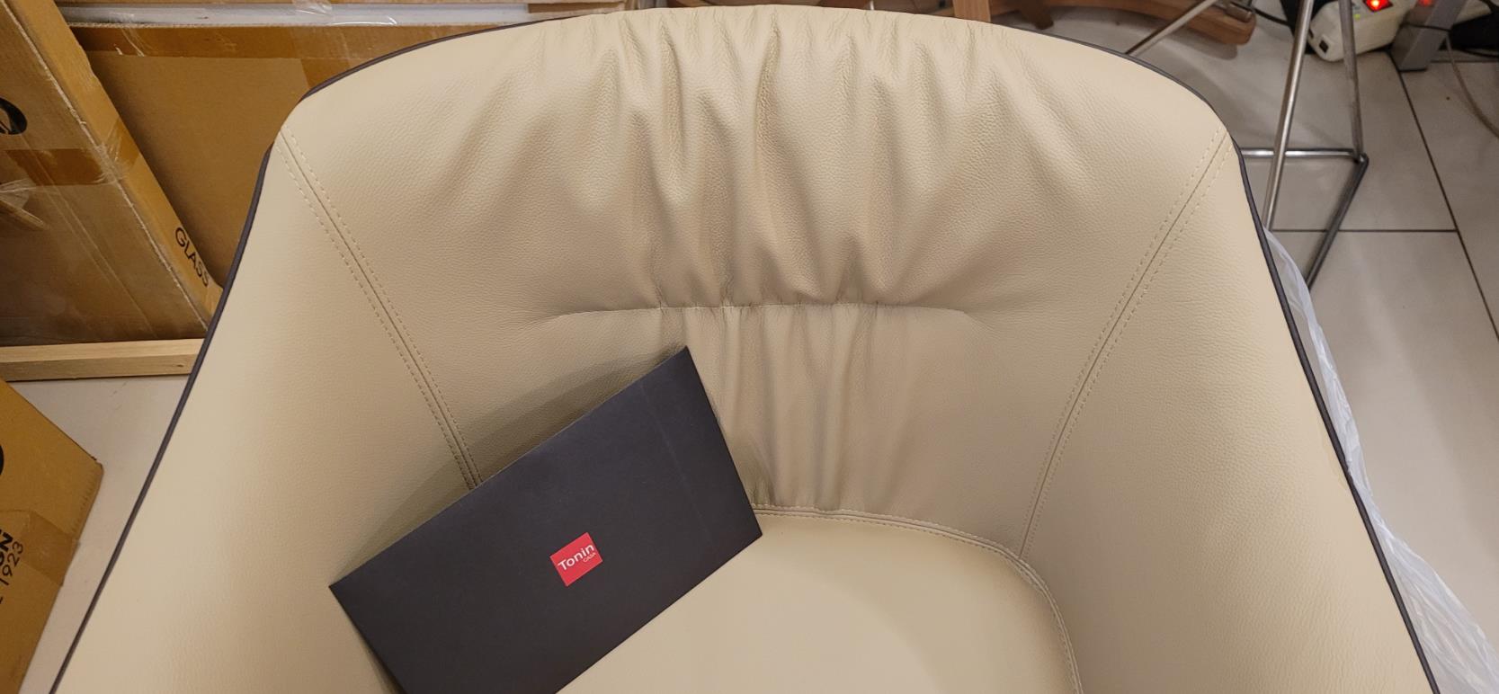 Отделка: кожа песочного цвета с коричневым кантом, ножки орех