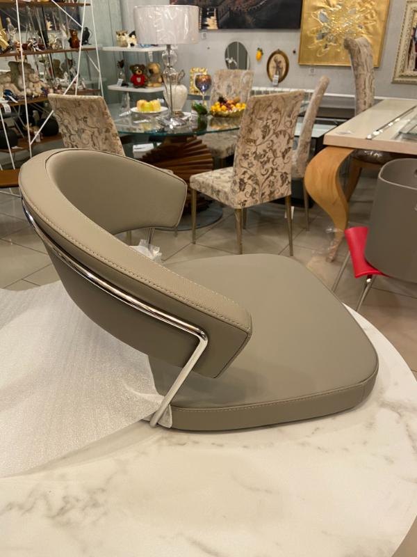 Отделка: Ножка - хром P77 Chromed, сиденье и спинка - натуральная кожа серого цвета Leather D04 Taupe: