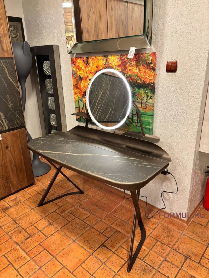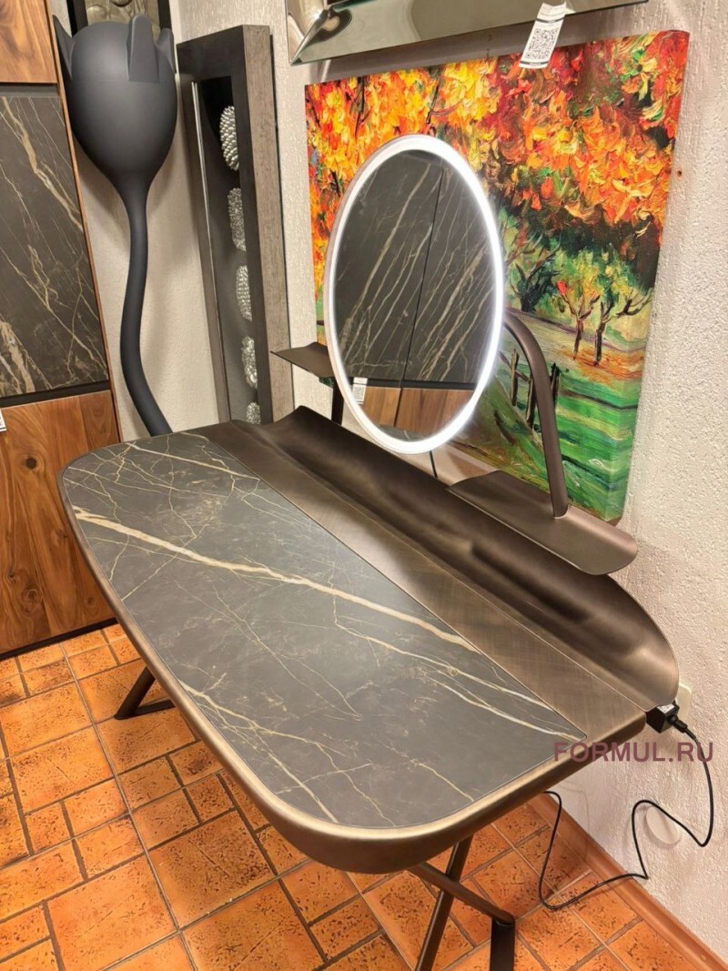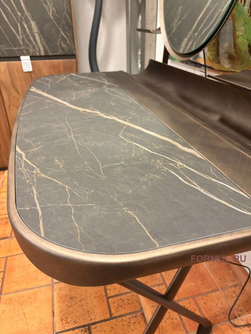Туалетный столик с базой из стали. столешница керамика матовая (KM07), Гофрированная сталь, окрашенная в бронзу (GFM18)