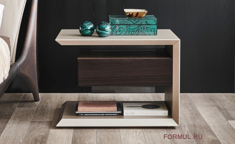 Дизайнерская тумбочка Biagio сочетает в себе геометрические формы и различные материалы, образуя уникальную и функциональную современную тумбочку. Внешняя структура выполнена из лакированного дерева, а выдвижной ящик демонстрирует изысканную натуральную древесину. Прозрачный метакрилат под ним служит изысканной основой, разделяя нижнюю полку на два отделения. Коллекция для спальни от Cattelan Italia состоит из современных тумбочек и дизайнерских двуспальных кроватей. Она была создана для того, чтобы дополнить современную спальню очаровательными дизайнерскими элементами.