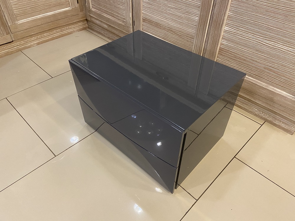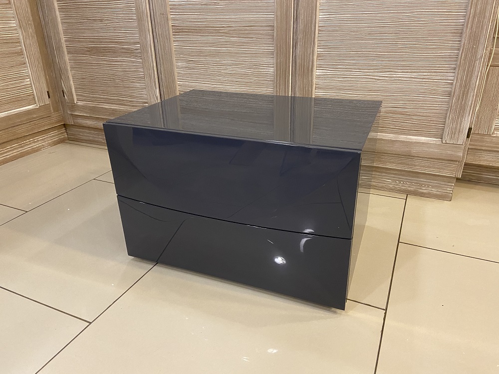 Это напольная модель, она отличается лаконичностью форм — ни одной лишней детали. При этом она является функциональным дополнением к кровати. Удобно располагаются два выдвижных ящика без ручек. Открываются бесшумно одним легким нажатием руки за счет высокоточных технологий. Ящики вместительные, в ней легко разместится текстиль для спальной комнаты.