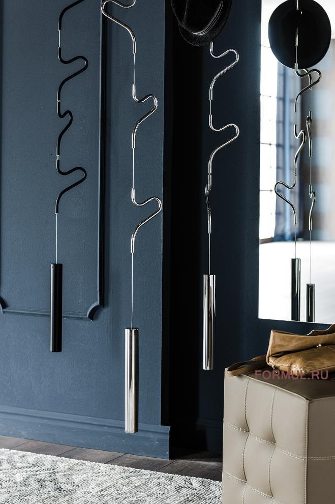 Сценографическая потолочная вешалка для одежды Air — уникальное в своем роде дополнение к современной мебели. Дизайнеры Toso и Quaggiotto создали пять изогнутых вращающихся элементов, прикрепленных к стальному тросу, свисающему с потолка, которые служат практичными крючками для одежды. Стальной цилиндр на конце маятника обеспечивает устойчивость, обогащая этот оригинальный предмет. Эта оригинальная вешалка авторского дизайна подойдет для украшения гостиной, спальни или гардеробной. Ее также можно использовать в проектах дизайна интерьера, чтобы удивить гостей у входа в современный ресторан или элегантную гардеробную.