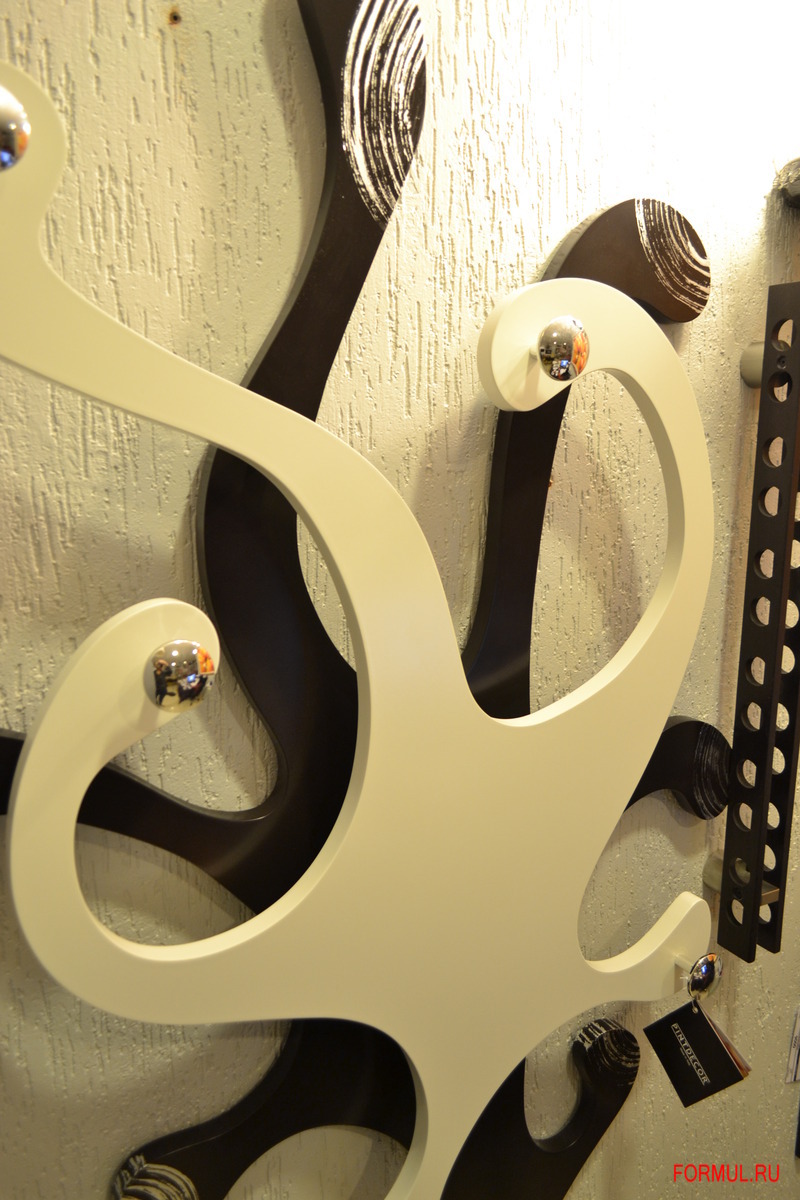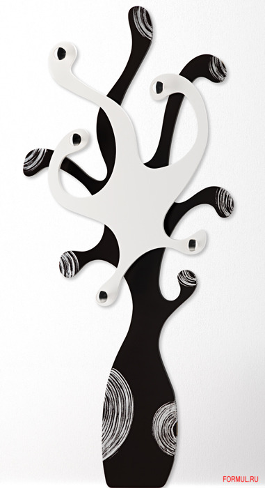 Созданная из лакированного МДФ и покрытая местами серебряной фольгой, она абстрактна и в то же время дает простор фантазии: то ли это причудливые растения или красивое дерево, то ли развивающиеся волосы Медузы Горгоны. Каждый может интерпретировать по-своему. Сочетание белого и черного, разбавленное серебром, дает приятное ощущение правильного совмещения цвета. Она, несомненно, украсит и выделит своей индивидуальностью холл, и в то же время ее можно повесить в спальне, где она будет и украшать и создавать неожиданную ауру. Функциональность остается незыблемой – на нее можно повесить халат в спальне. Приобрести вешалку можно на распродаже итальянской мебели, при этом цена и качество исполнения будут для вас приятны.