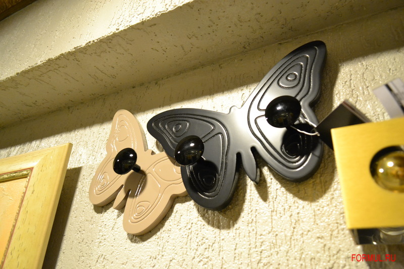 Лакированная вешалка в виде бабочек с резьбой и ручками.
