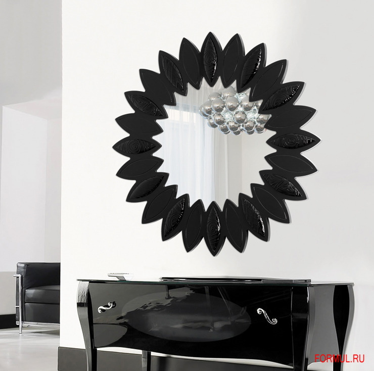 Речь идёт об оригинальном дизайнерском проекте – настенном зеркале P4280 – COLLIER. Это необычное круглое зеркало оформлено в виде цветка чёрного цвета. Лепестки цветка являются одновременно и рамой для непосредственно зеркала, и неординарным элементом декора. Некоторые из них дополнительно украшены искусным узором – изящной резьбой. Следует отметить, что данная модель зеркала предназначена для тех, кто знает толк в настоящем итальянском качестве и предпочитает окружать себя креативными предметами.