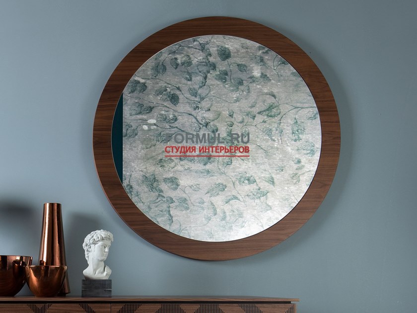В диаметре зеркало имеет 160 см, а толщина его 3,5 см. Материал обрамления - орех каналетто, зеркало отлично дополнит классический стиль, но наиболее оптимально оно смотрится именно в современном дизайне.